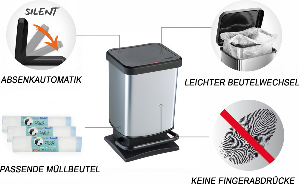 Rotho Мусорное ведро для кухни с педалью и крышкой