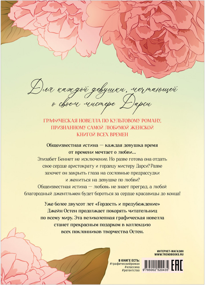 💳 Оплатить за товар можно при получении 🇰🇿 Есть бесплатная доставка по Казахстану от 1 дня 🎁 Копите бонусы с каждой покупки Графический роман «Гордость и предубеждение» — это мировая классика в уникальном формате комикса! Книга Джейн Остен, которую знают и любят во всем мире, — это романтика как для подростков, так и для взрослых ценителей классической художественной литературы и прозы Young Adult. |