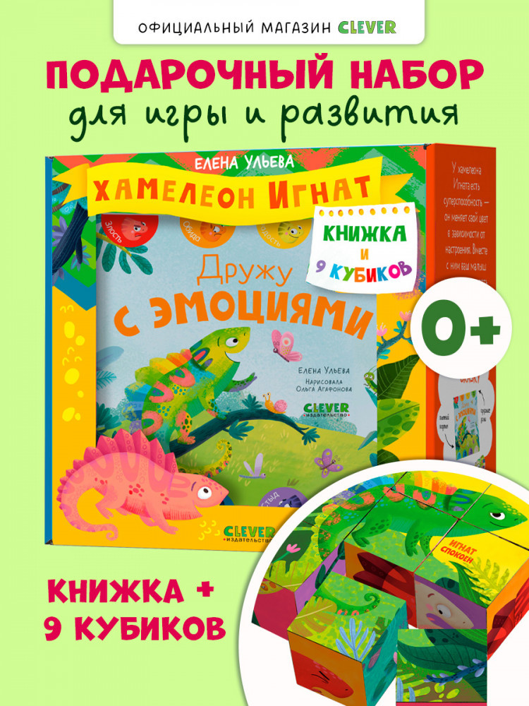 Подарочный набор. Хамелеон Игнат. Книжка и 9 кубиков-25% +96