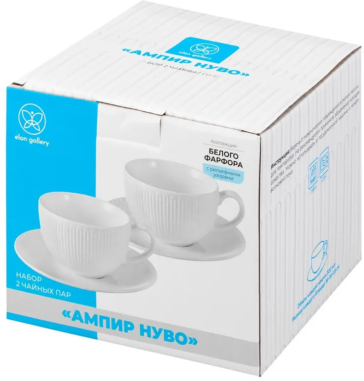В отличие от керамики фарфор не впитывает цвет напитков, легко отмывается, поэтому сохраняет свою белизну долгое время. Беречь от резких перепадов температур и механических повреждений. Не рекомендуется применять абразивные моющие средства. Комплект можно использовать в микроволновой печи и посудомоечной машине. Поставляется в красивой картонной коробке, поэтому вам не понадобится дополнительная подарочная упаковка, если вы решите преподнести сюрприз. Изящный набор на 2 персоны станет приятным подарком на любой праздник и добавит эстетики каждому чаепитию. В коллекции бренда Элан Галерея представлено много стильных товаров для дома, в том числе всё для создания красоты и уюта на кухне. Коллекция «Ампир Нуво» от Elan Gallery придаст элегантности повседневной сервировке и станет украшением праздничного стола!
