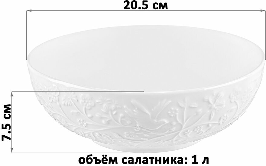 💳 Оплатить за товар можно при получении 🇰🇿 Есть бесплатная доставка по Казахстану от 1 дня 🎁 Копите бонусы с каждой покупки Серия: Райский сад Набор 2 салатников из серии «Райский сад» от Elan Gallery предназначен для эстетичной сервировки вашего стола. Размер каждого изделия — 20.5×20.5×7.5 см, объём — 1 литр. Выполнены из высококачественного белого фарфора. Он не впитывает цвет продуктов и легко отмывается, благодаря чему надолго сохраняет свою белизну. Поверхность изделий овивают тонкие лиственные и цветочные веточки, возле которых порхают выразительные птицы. Большие глубокие миски станут идеальным вариантом для любителей здорового питания. Используйте их для приготовления и подачи салатов, а также овощей и фруктов. Кроме того, они послужат для сервировки холодных закусок и гарниров, разнообразных сладостей и десертов. Задействуйте в качестве конфетницы для организации уютного чаепития. Мягкая округлая форма и изысканный дизайн позволят салатницам гармонично дополнить интерьер любой кухни или столовой. Поставляются в дизайнерской картонной коробке — благодаря ей вам не потребуется дополнительная подарочная упаковка. Фарфоровая сервировочная посуда будет оригинальным подарком для хозяйки, ценящей не только практичность, но и привлекательность. Серия «Райский сад» от бренда Элан Галерея станет украшением любого кухонного инвентаря и позволит собрать красивый сервиз в едином стиле! |