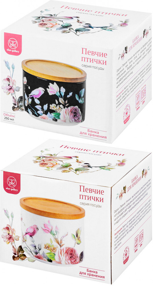 Elan Gallery Набор банок с крышками для хранения и запекания «Певчие птички + Певчие птички на черном»-25% +61