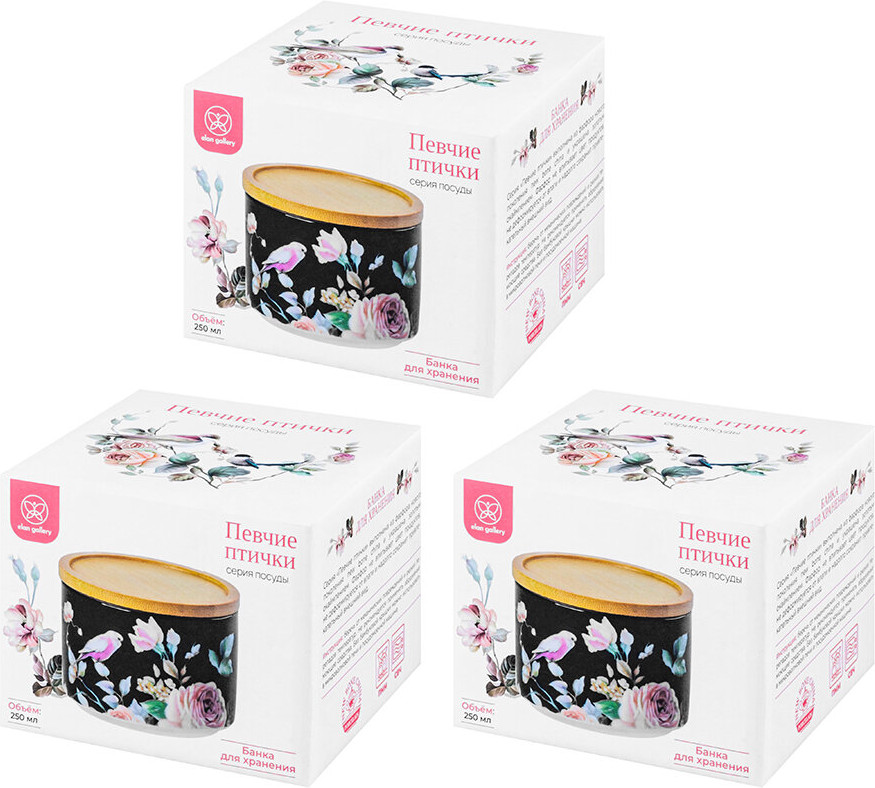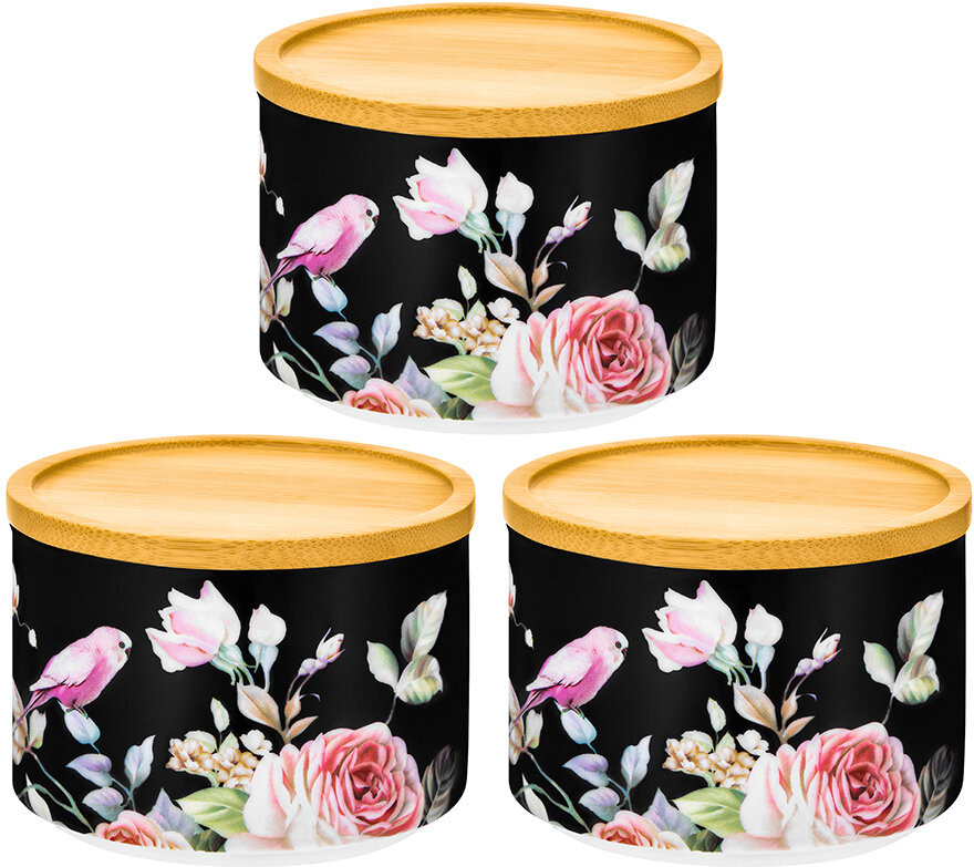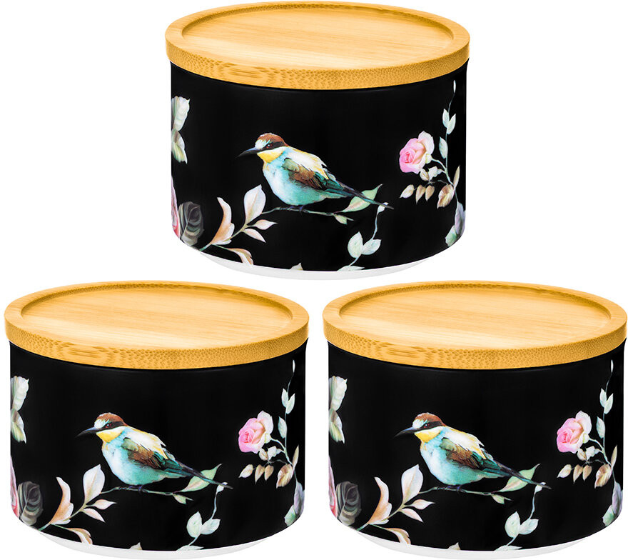 Elan Gallery Набор банок с крышками для хранения и запекания «Певчие птички на черном»-25% +88
