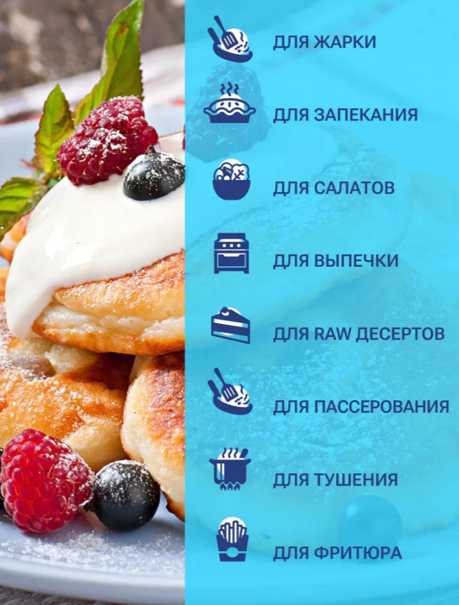 🥥 Наше кокосовое масло — это высококачественный продукт, который станет незаменимым помощником на вашей кухне. Оно идеально подходит для жарки, выпечки и приготовления соусов.