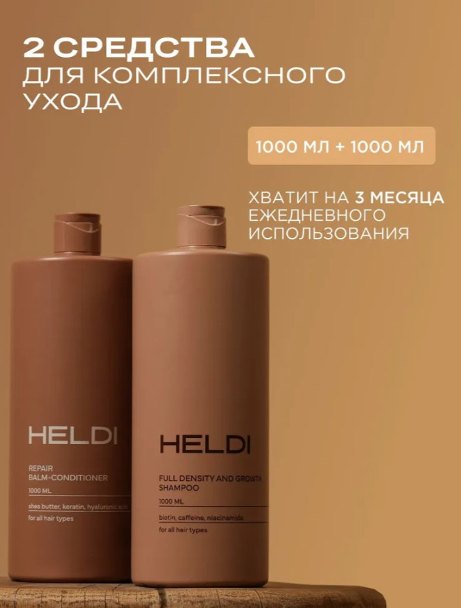 Набор шампунь и бальзам для роста и укрепления волос HELDI — это комплексный подход по уходу за волосами в два этапа, не выходя из дома. Прекрасный подарок на 8 марта. При разработке наших косметических средств для ванны и душа мы опираемся на опыт профессиональных брендов и используем лишь натуральные органические компоненты и растительные экстракты.