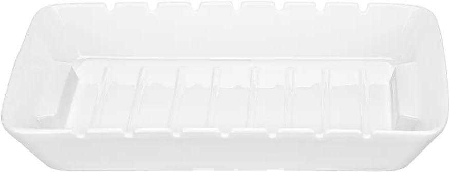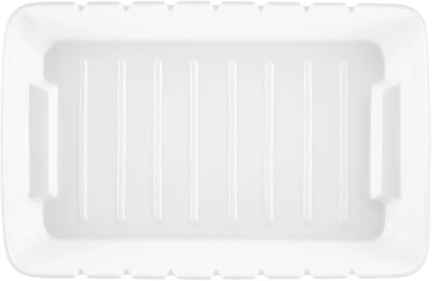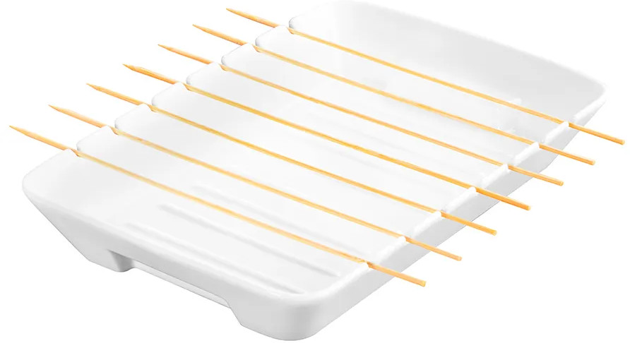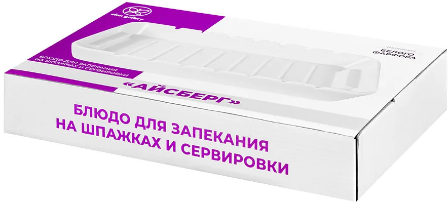 Блюдо для сервировки и запекания на шпажках Elan Gallery «Айсберг» размером 31×20×4.5 см и объёмом 1.2 литра прямоугольной формы выполнено из белого фарфора. Внутренние размеры формы: сверху — 30×18×4 см, по дну — 25.5×15 см. Фарфоровая ёмкость с бортиками предназначена для запекания на палочках различных блюд из рыбы, овощей или мяса, например, шашлыка. Шпажки в комплект не входят. Внизу по краям имеет удобные для захвата углубления и рельефное дно. Можно использовать как обычную ёмкость для запекания. Приготовьте в ней творожную запеканку или десерт. Прямоугольное блюдо можно использовать для сервировки канапе, нарезки, овощей или фруктов для большого количества гостей на вечеринке. Подойдет для подачи сельди под шубой, салатов или плова. Используйте её как салатницу, шубницу или подачи хлеба. Фарфоровая посуда отличается от керамической повышенной плотностью. Фарфор не впитывает цвет продуктов и не деформируется от влаги, чему может быть подвержена керамика.
