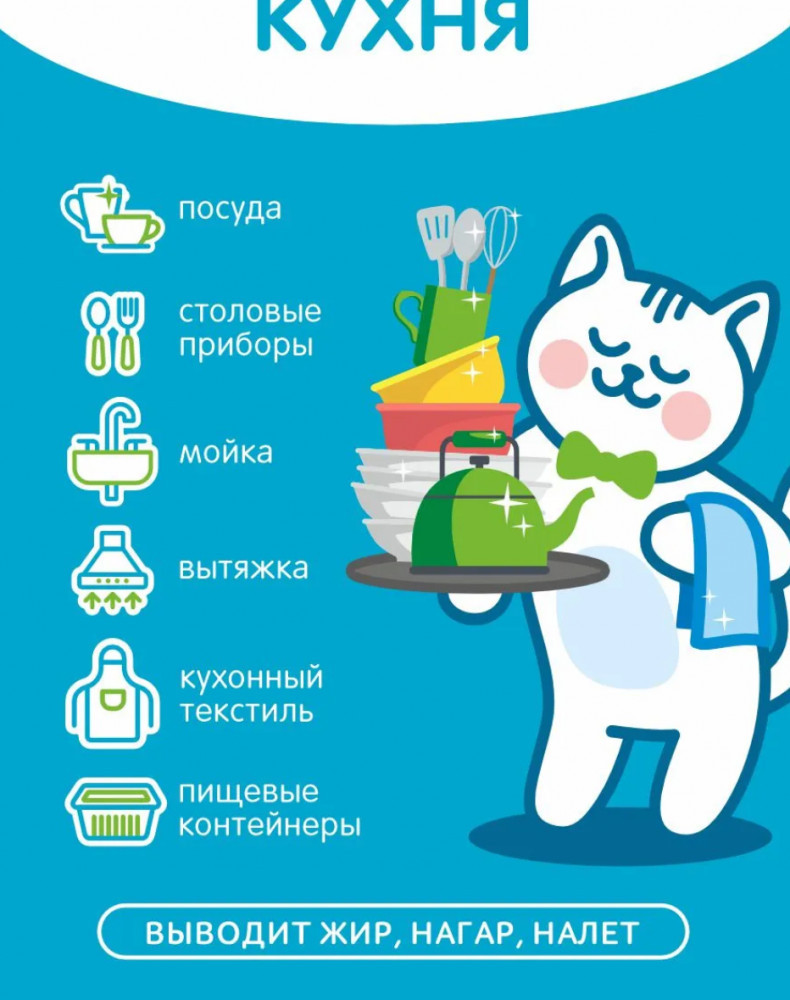 • предназначен не только для стирки белья, но и для чистки кухонной утвари от въевшегося жира, нагара, старого пищевого налета, чайного, кофейного и прочих органических налетов;