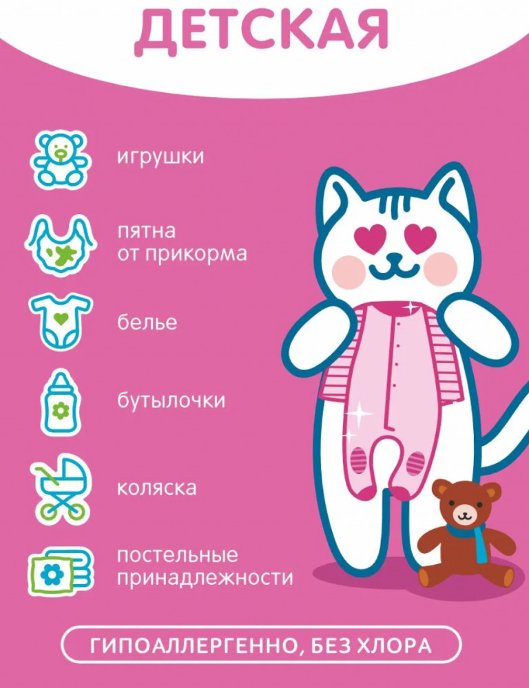 • на 100% экологичная бытовая химия: в процессе реакции эко-порошок распадается на соду, воду и активный кислород;