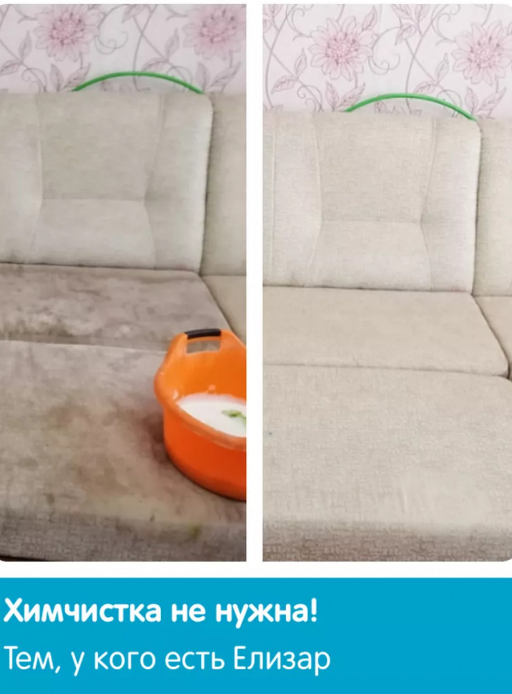 • используется как средство для чистки ковров (палас, ковролин и пр.), для чистки мягкой мебели (обивки дивана, кресел, стульев, мебельный чехол). Елизаром можно почистить матрас от пятен, разводов и запахов. Пятновыводитель позволяет значительно сэкономить на химчистке;