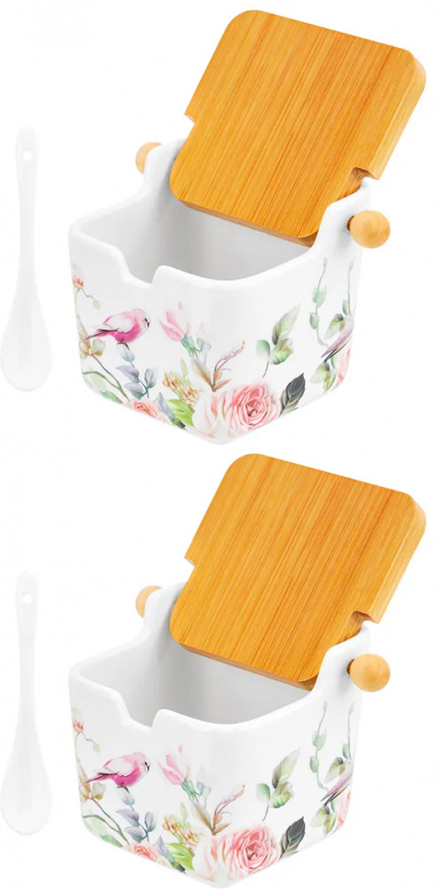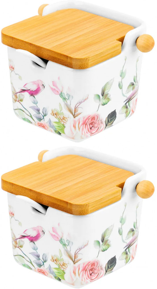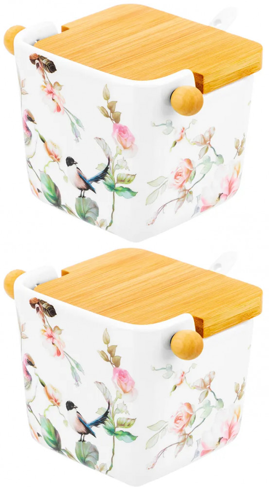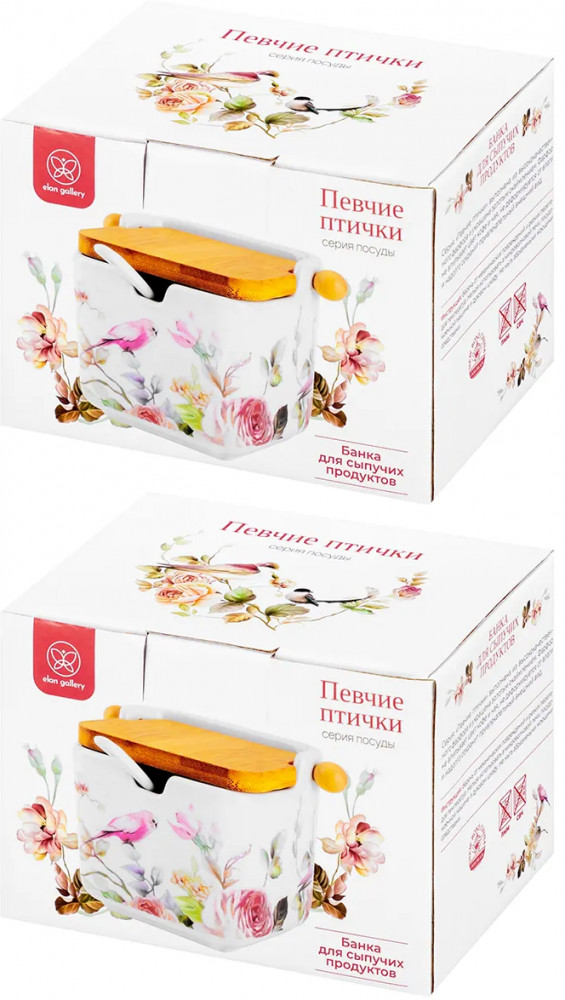 Elan Gallery Набор банок для сыпучих продуктов с откидными крышками и ложками «Певчие птички»