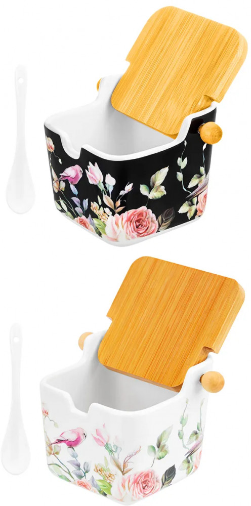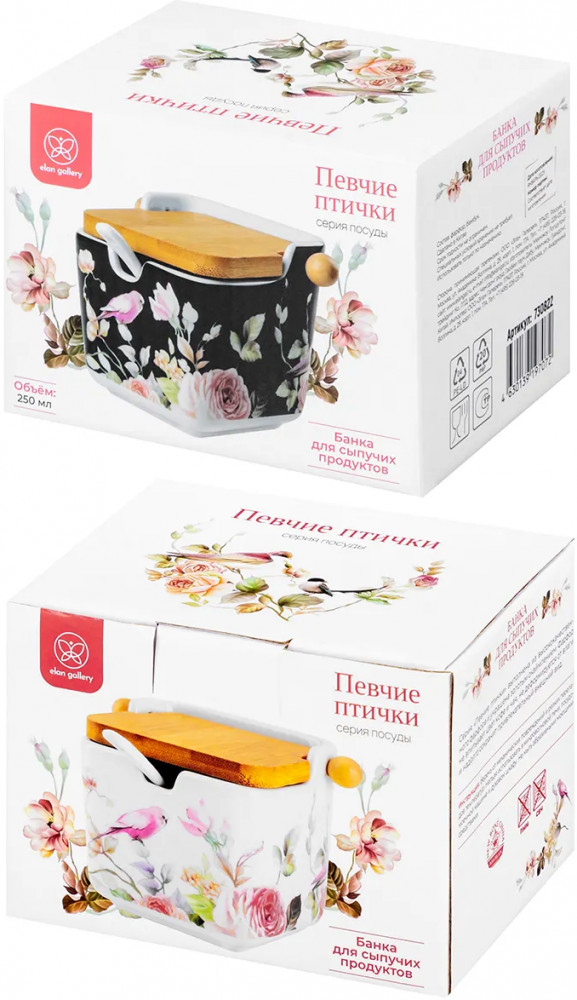 Elan Gallery Набор банок для сыпучих продуктов с откидными крышками и ложками «Певчие птички»