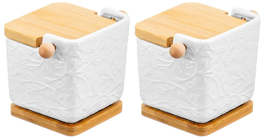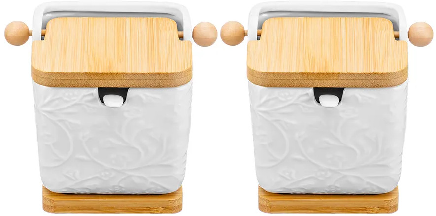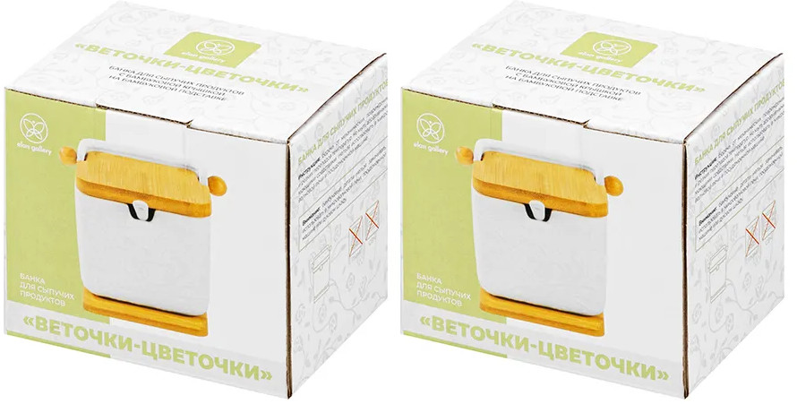 Elan Gallery Набор банок для сыпучих продуктов на деревянных подставках с откидными крышками и ложками «Веточки-цветочки»