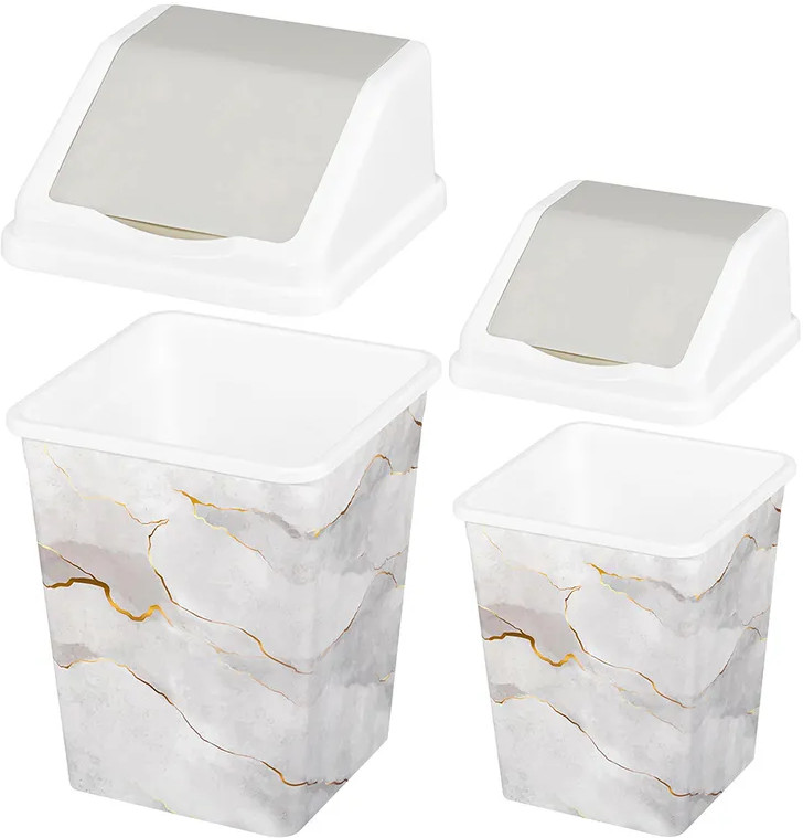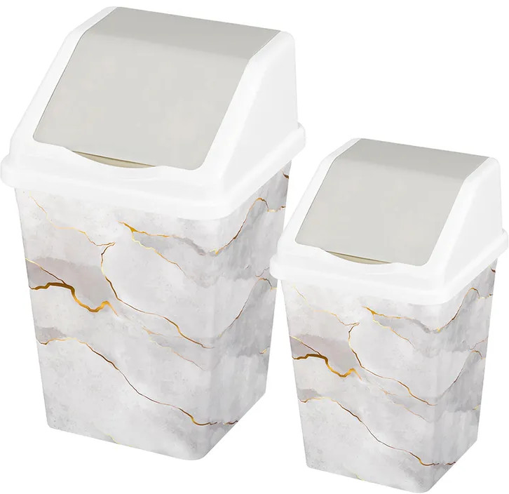 Набор ведер для мусора с подвижной крышкой | Мрамор | El Casa