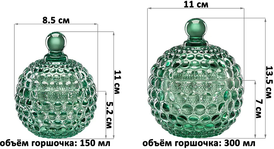 💳 Оплатить за товар можно при получении 🇰🇿 Есть бесплатная доставка по Казахстану от 1 дня 🎁 Копите бонусы с каждой покупки Серия: Пузырьки Набор 2 горшочков для мёда Elan Gallery «Пузырьки» с крышками выполнен из стекла и украшен декоративными рельефными узорами. В набор входят изделия размерами: 8.5×8.5×11 см на 150 мл (высота без крышки 5.2 см) и 11×11×13.5 см на 300 мл (высота без крышки 7 см). Интересные баночки зелёного цвета подойдут для хранения мёда, варенья, сахара и соли. Можно использовать как ёмкости для чая, кофе и других сыпучих продуктов. Декоративная баночка круглой формы станет гармоничным дополнением при сервировке вашего стола как в будни, так и на праздник. Красивый дизайн позволит использовать её не только для хранения продуктов, но и для подачи на стол. Положите внутрь конфеты или икру, чтобы удивить гостей изящной сервировкой. |