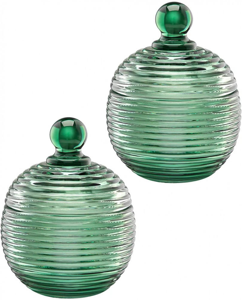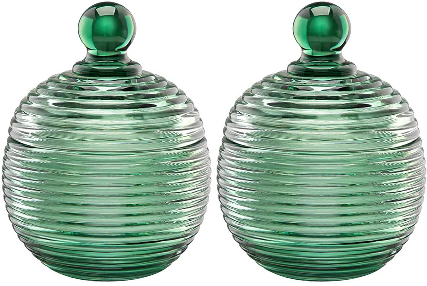 Набор 2 горшочков для мёда Elan Gallery «Каскад» с крышками выполнен из стекла и украшен декоративными рельефными узорами в виде горизонтальных полосок. Размер каждого изделия — 8.2×8.2×11 см, объём — 150 мл. Высота без крышки — 5.2 см. Баночка зелёного цвета с полосатым рельефом подойдёт для хранения мёда, варенья, сахара и соли. Можно использовать её как ёмкость для чая, кофе и других сыпучих продуктов. Декоративная баночка круглой формы станет гармоничным дополнением при сервировке вашего стола как в будни, так и на праздник. Красивый дизайн позволит использовать её не только для хранения продуктов, но и для подачи на стол. Положите в неё конфеты или икру, чтобы удивить гостей изящной сервировкой.