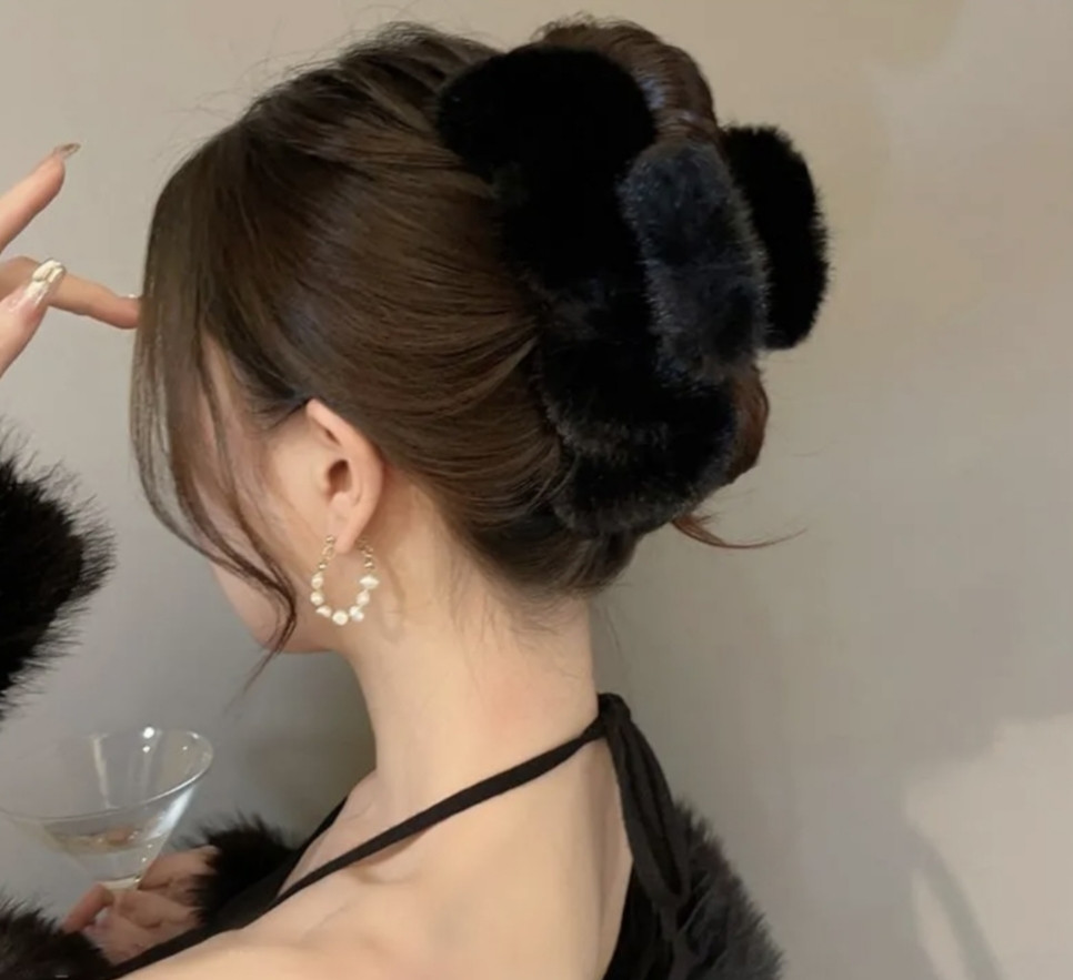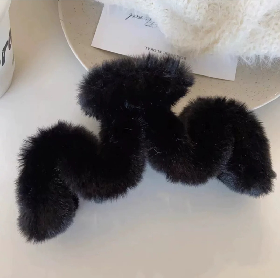 Пушистый меховой крабик для волос