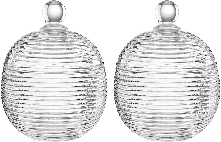 Набор 2 горшочков для мёда Elan Gallery «Каскад» с крышками выполнен из стекла и украшен декоративным рельефным узором в виде горизонтальных полосок. Размер изделия — 10.7×10.7×13.5 см, объём — 300 мл. Высота без крышки — 7 см. Прозрачная баночка с полосатым рельефом подойдёт для хранения мёда, варенья, сахара и соли. Можно использовать её как ёмкость для чая, кофе и других сыпучих продуктов. Декоративная баночка круглой формы станет гармоничным дополнением при сервировке вашего стола как в будни, так и на праздник. Красивый дизайн позволит использовать её не только для хранения продуктов, но и для подачи на стол. Положите в неё конфеты или икру, чтобы удивить гостей изящной сервировкой.