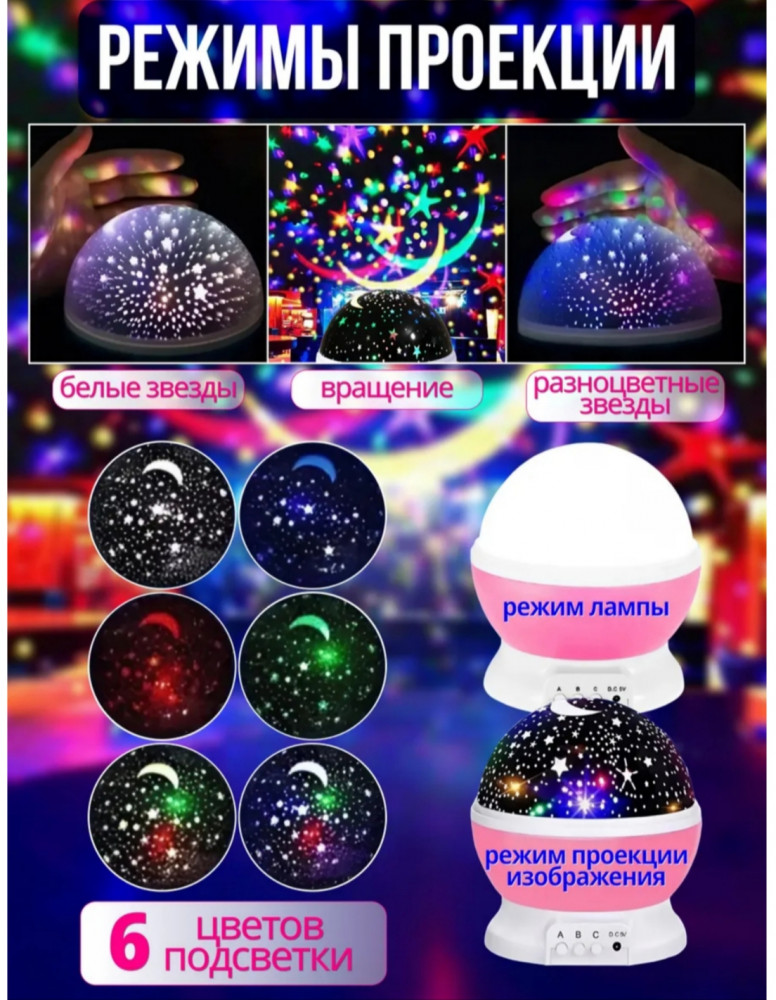 Вращающийся ночник-проектор 2 в 1 «Звёздное небо»