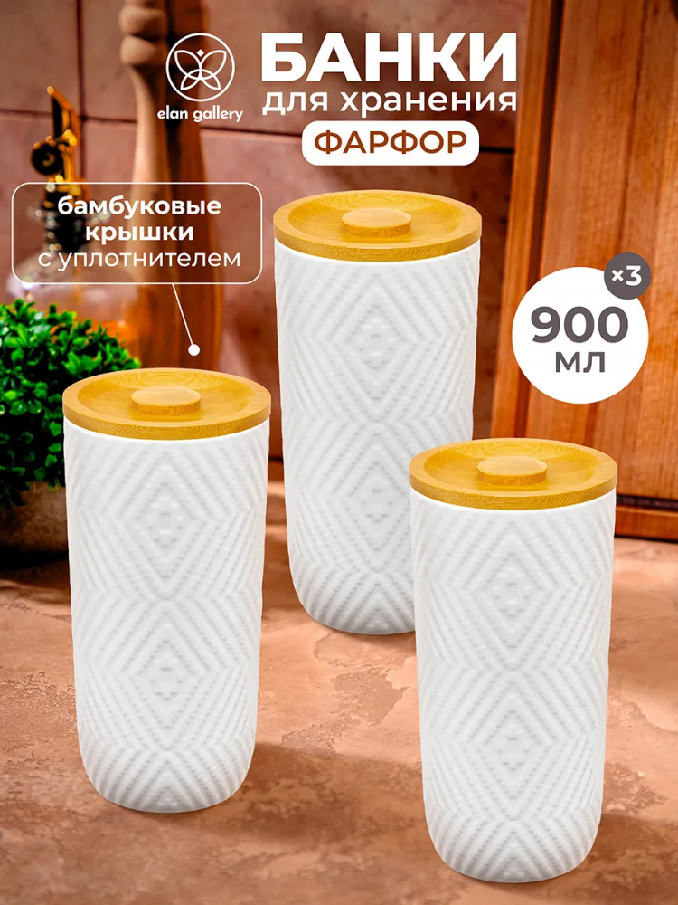 Elan Gallery Набор банок для сыпучих продуктов с крышками