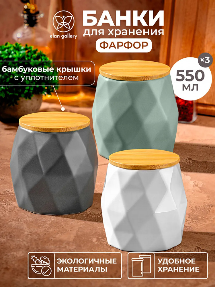 Elan Gallery Набор банок для сыпучих продуктов с крышками