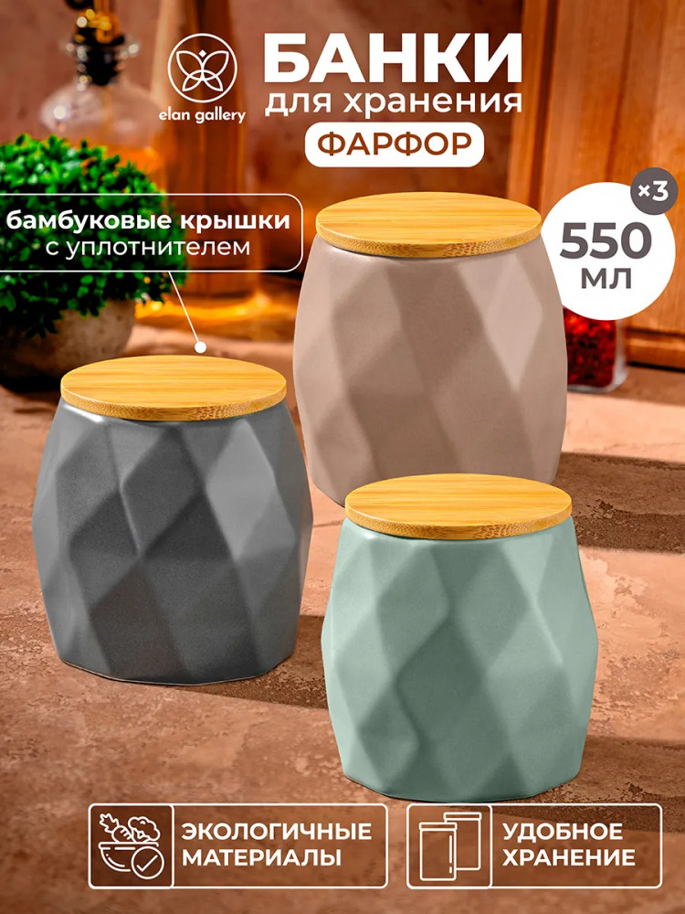 Elan Gallery Набор банок для сыпучих продуктов с крышками