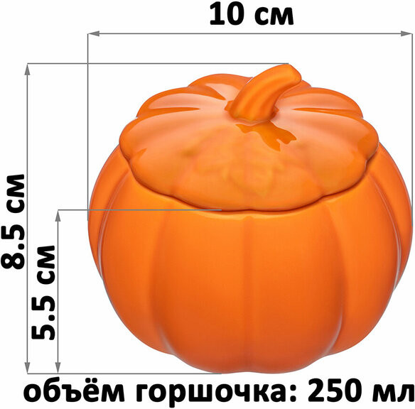 Набор 6 горшочков для запекания с крышками от Elan Gallery «Тыква» выполнен из фарфора. Каждый горшочек имеет фигурную форму тыковки. Можно использовать как рамекин, жюльенницу, а также для красивой сервировки. Размер каждого — 10×10×8.5 см, объём — 250 мл. Высота без крышки — 5.5 см, диаметр донышка — 7.5 см, диаметр крышки — 7.7 см. Маленькая фарфоровая ёмкость с крышечкой подходит для выпекания в духовке и оригинальной подачи готового блюда на стол в той же форме. Посуду можно использовать для приготовления жюльена, порционных блюд из мяса и рыбы, картофельных и творожных запеканок. Станут удобными и оригинальными формами для подачи десертов. Кухонный инвентарь станет полезным подарком на праздник. Горшочки поставляются в стильной картонной коробке. Благодаря красочной коробочке не понадобится подарочная упаковка, если вы решите сделать сюрприз для близких. В коллекции бренда Элан Галерея представлено много кухонной утвари и других товаров для дома. Выберите варианты на свой вкус!