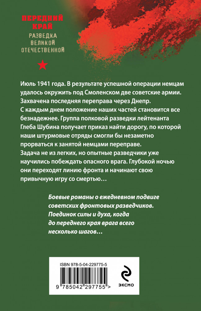 💳 Оплатить за товар можно при получении 🇰🇿 Есть бесплатная доставка по Казахстану от 1 дня 🎁 Копите бонусы с каждой покупки Серия: Передний край. Разведка Великой Отечественной (обложка) Июль 1941 года. В результате успешной операции немцам удалось окружить под Смоленском две советские армии. Захвачена последняя переправа через Днепр. С каждым днем положение наших частей становится все безнадежнее. Группа полковой разведки лейтенанта Глеба Шубина получает приказ найти дорогу, по которой наши штурмовые отряды смогли бы незаметно прорваться к занятой немцами переправе. Задача не из легких, но опытные разведчики уже научились побеждать опасного врага. Глубокой ночью они переходят линию фронта и начинают свою привычную игру со смертью... |