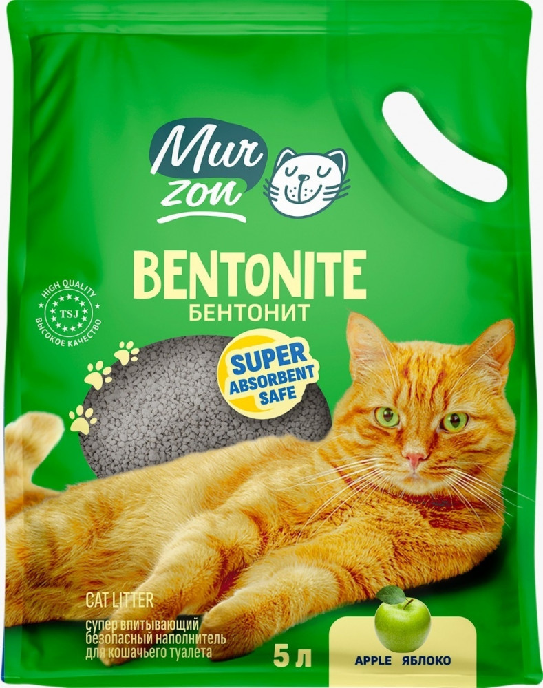 Бентонит — натуральное вещество, глина, преимуществом которого является высокая гигроскопичность и поглощение запахов. Наполнители из этого материала наиболее распространённые. При контакте с кошачьей мочой бентонитовый наполнитель комкуется, образуя плотную массу, которую легко удалить из лотка специальной лопаточкой. Остальная часть наполнителя остается в лотке. Выпускается в виде зёрен, похожих на гравий. Могут быть без запаха или ароматизированные, например запахом, лаванды, лесной клубники, яблока, розы.