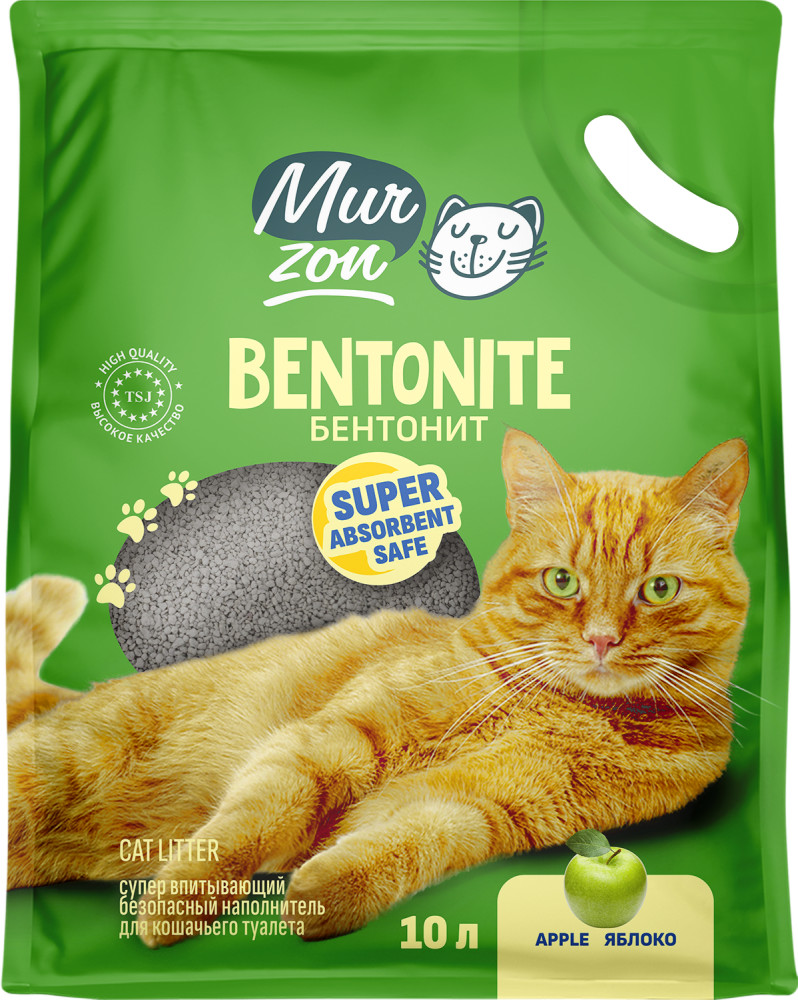 Бентонит — натуральное вещество, глина, преимуществом которого является высокая гигроскопичность и поглощение запахов. Наполнители из этого материала наиболее распространённые. При контакте с кошачьей мочой бентонитовый наполнитель комкуется, образуя плотную массу, которую легко удалить из лотка специальной лопаточкой. Остальная часть наполнителя остается в лотке. Выпускается в виде зёрен, похожих на гравий. Могут быть без запаха или ароматизированные, например запахом, лаванды, лесной клубники, яблока, розы.