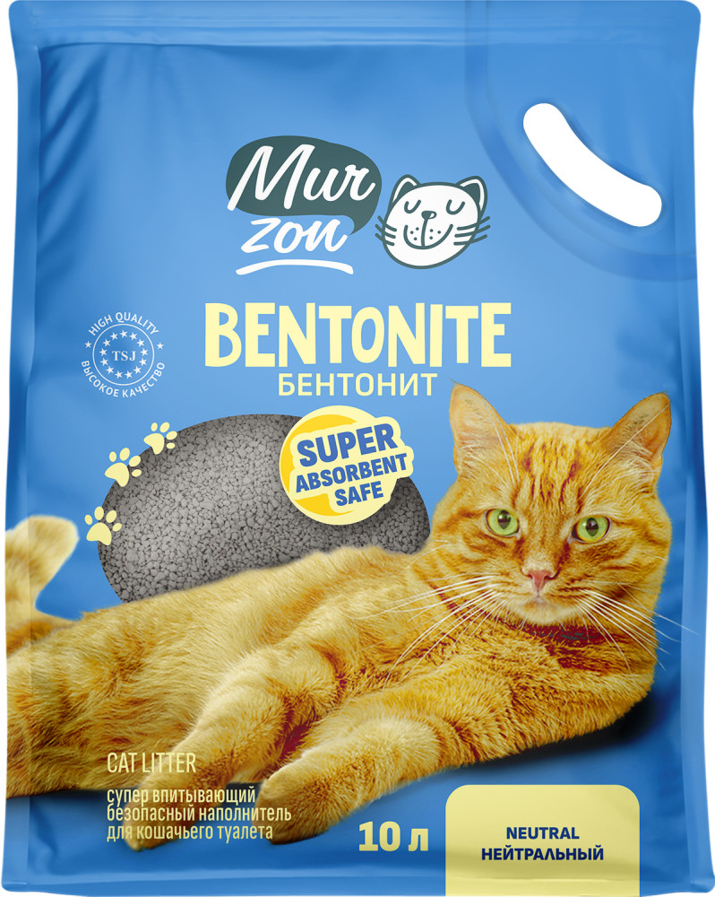 Бентонит — натуральное вещество, глина, преимуществом которого является высокая гигроскопичность и поглощение запахов. Наполнители из этого материала наиболее распространённые. При контакте с кошачьей мочой бентонитовый наполнитель комкуется, образуя плотную массу, которую легко удалить из лотка специальной лопаточкой. Остальная часть наполнителя остается в лотке. Выпускается в виде зёрен, похожих на гравий. Могут быть без запаха или ароматизированные, например запахом, лаванды, лесной клубники, яблока, розы.