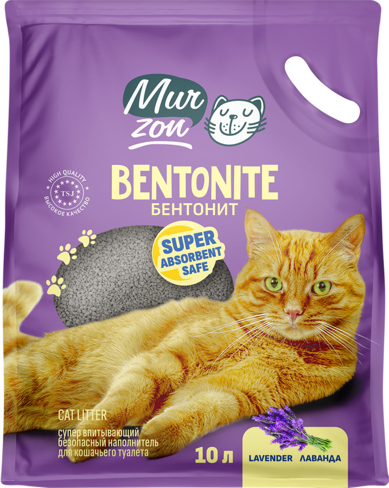 Бентонит — натуральное вещество, глина, преимуществом которого является высокая гигроскопичность и поглощение запахов. Наполнители из этого материала наиболее распространённые. При контакте с кошачьей мочой бентонитовый наполнитель комкуется, образуя плотную массу, которую легко удалить из лотка специальной лопаточкой. Остальная часть наполнителя остается в лотке. Выпускается в виде зёрен, похожих на гравий. Могут быть без запаха или ароматизированные, например запахом, лаванды, лесной клубники, яблока, розы.
