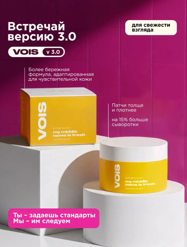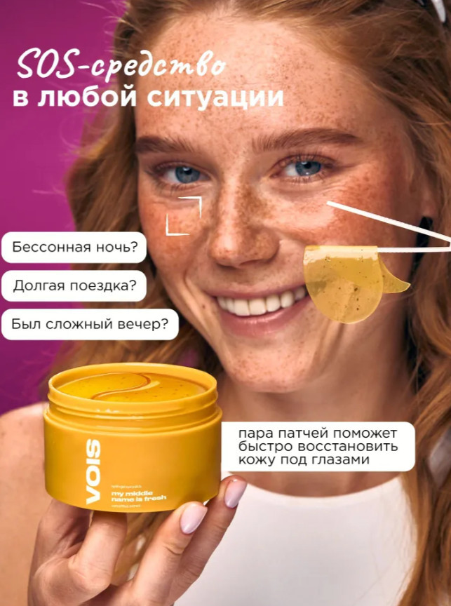 VOIS Патчи гидрогелевые для глаз от отеков и темных кругов с частичками золота