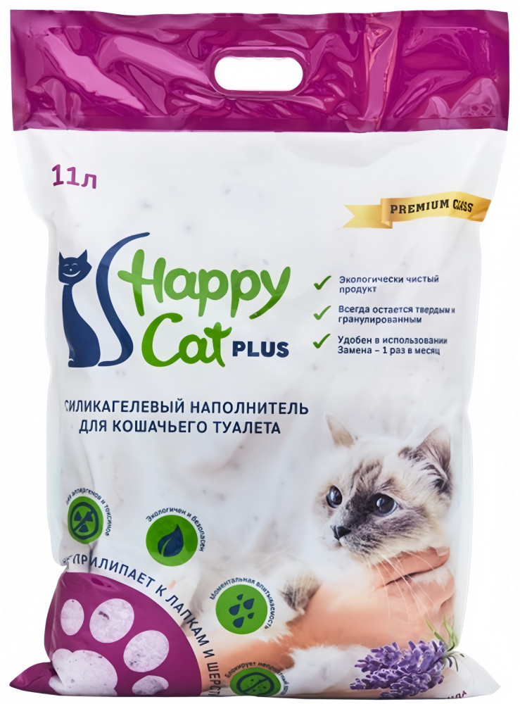 Happy Cat plus Силикагелевый наполнитель с ароматом лаванды