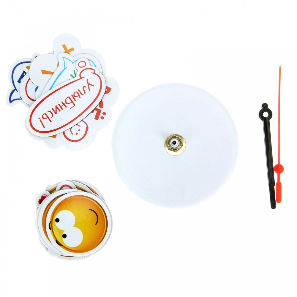 Стрелки отваливаются, не держатся совсем. Часы выкинули, смайлики раскидали по холодильнику.