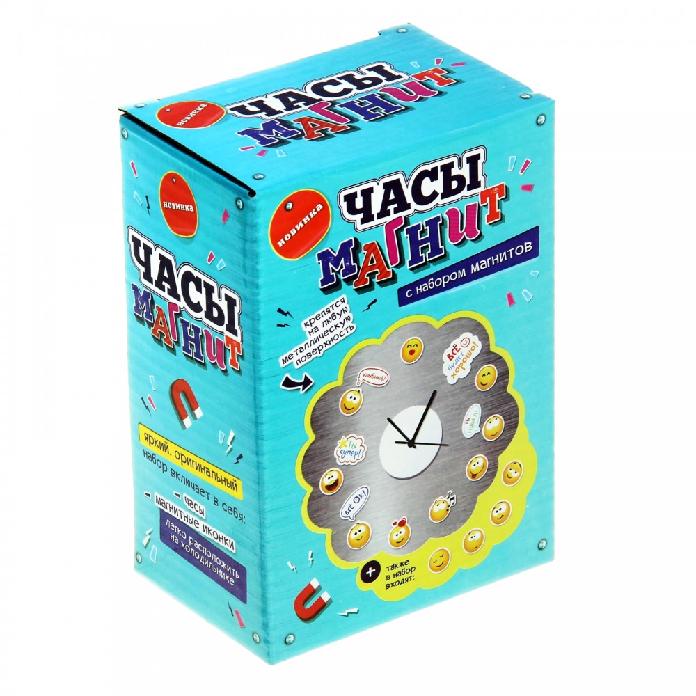 Качество часов ужасное, развалилось прям на руках, плохо держится на холодильнике. Детям понравились смайлики магниты и все. Не советую!