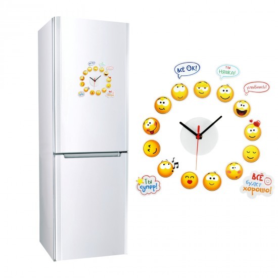 Всем, здрасьте! Задумка и аннотация к часам очень понравился (и мне они пришли по акций - бесплатно :) хоть и "даренному коню в зубы не смотрят", решил оставить свой коментарий, так как просили). Те люди, которые его будут покупать (именно на холодильник), мой совет, если только ради прикольных смайликов, которые будут висеть отдельно от часов ))) Сами часы - 80% из ста, не будет работать, т.к, а) вес самих часов тяжеловат для маленького магнита задней крышки; б) стрелки часов плохо крепиться на "язычке"; в) без цифр, плохо угадывается точное время; г) сразу ставьте качественные батарейки; д) возьмите на заметку, что двери холодильника могут иногда закрываться сильнее обычного ввиду различных обстоятельств ))) П.С: Спасибо большое команде Флип за быструю доставку и радостным смайликам в моем холлодильнике!