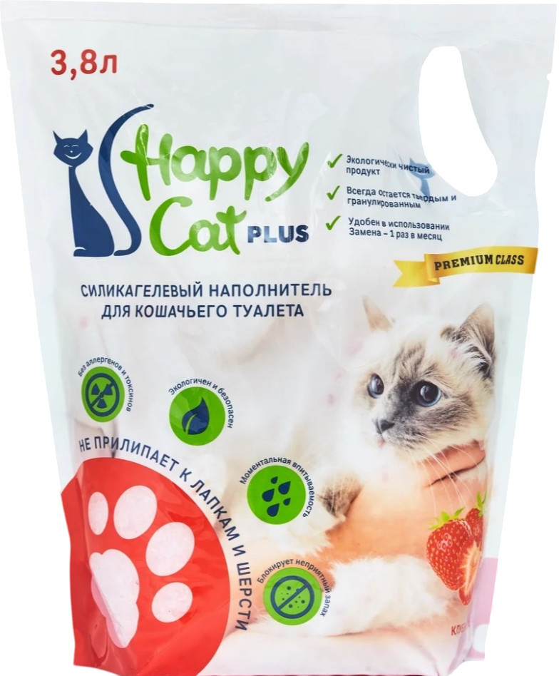 Happy Cat с ароматом клубники – это мягкий наполнитель подойдет как для взрослых котов, так и для котят, он не прилипает к кошачьим лапкам. Жидкость впитывается внутрь пористых гранул, а затем постепенно испаряется. При контакте с мочой не происходит агломерация. Данный наполнитель способен поглощать все бактерии, а также молекулы, образующие неприятный запах.