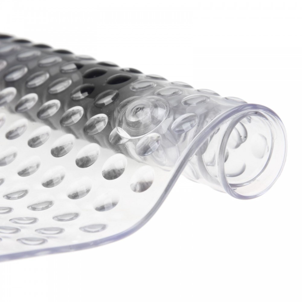 Очень симпатичный коврик. Маленькие присоски на обратной стороне, не дают коврику скользить. Надеюсь, запах резины со временем выветрится.