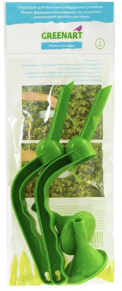 Лейка-насадка, Greenart, подходит для бутылок стандартных размеров. С помощью насадки можно равномерно и бережно полить растения. Подходит для дома и дачи. В упаковке 2 насадки. Инструкция указана на упаковке. Размер: 5×22 см. Состав: полипропилен, полиэтилен.
