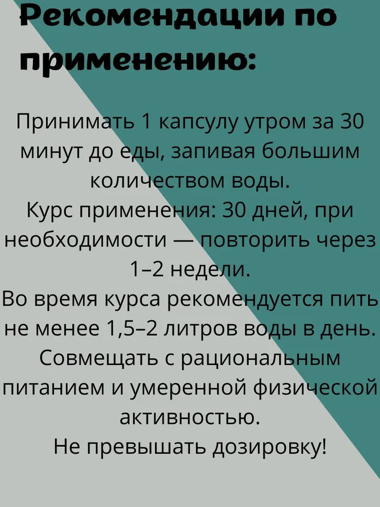Важно отметить, что Li Da for Tiffany «You Are Beautiful» не вызывает привыкания, не содержит синтетических стимуляторов и безопасен при соблюдении рекомендаций. Рекомендуется принимать по 1 капсуле утром за 30 минут до еды, запивая достаточным количеством воды. В течение курса (30 дней) важно соблюдать водный режим (не менее 1,5 литров воды в день), сбалансированное питание и, по возможности, лёгкую физическую активность.