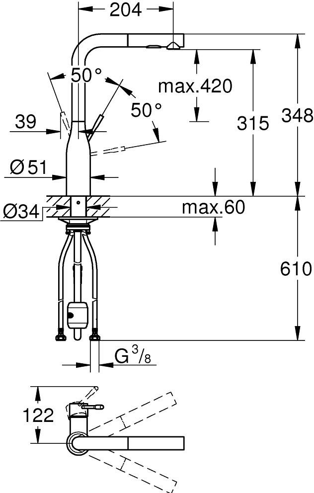 • GROHE EasyDock Легкое вытягивание и возврат на место выдвижного излива;