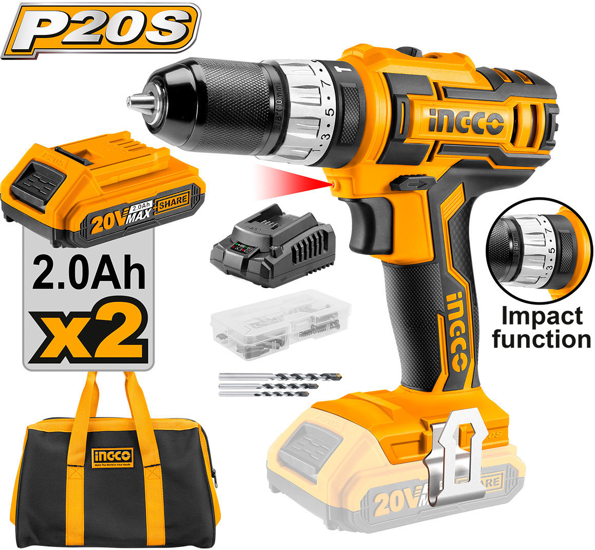 | INGCO Аккумуляторная ударная дрель-шуруповерт+776 (бонусов)