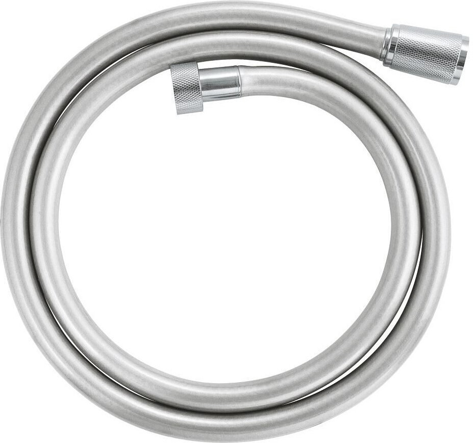 Душевой шланг Grohe Silverflex длиной 1250 мм с функцией TwistStop, усиленным исполнением Long-Life, максимальным давлением опрессовки до 12 бар и пределом прочности 500 N. Термостойкий до 75 °C, с защитой от заломов AntiFold и универсальным соединением G 1/2″ x 1/2″. Рифлёные элементы ProGrip с покрытием Long-Life Finish для комфортного использования и долговечности.
