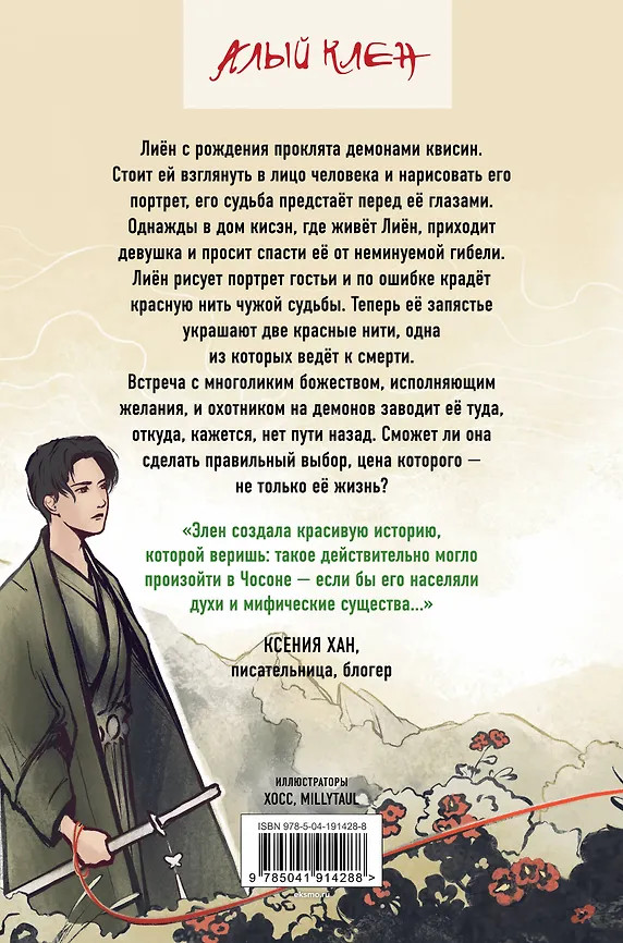 Лиён с рождения проклята демонами квисин. Стоит ей взглянуть в лицо человека и нарисовать его портрет, его судьба предстаёт перед её глазами. Однажды в дом кисэн, где живёт Лиён, приходит девушка и просит спасти её от неминуемой гибели. Лиён рисует портрет гостьи и по ошибке крадёт красную нить чужой судьбы. Теперь её запястье украшают две красные нити, одна из которых ведёт к смерти. Встреча с многоликим божеством, исполняющим желания, и охотником на демонов заводит её туда, откуда, кажется, нет пути назад. Сможет ли она сделать правильный выбор, цена которого — не только её жизнь?
