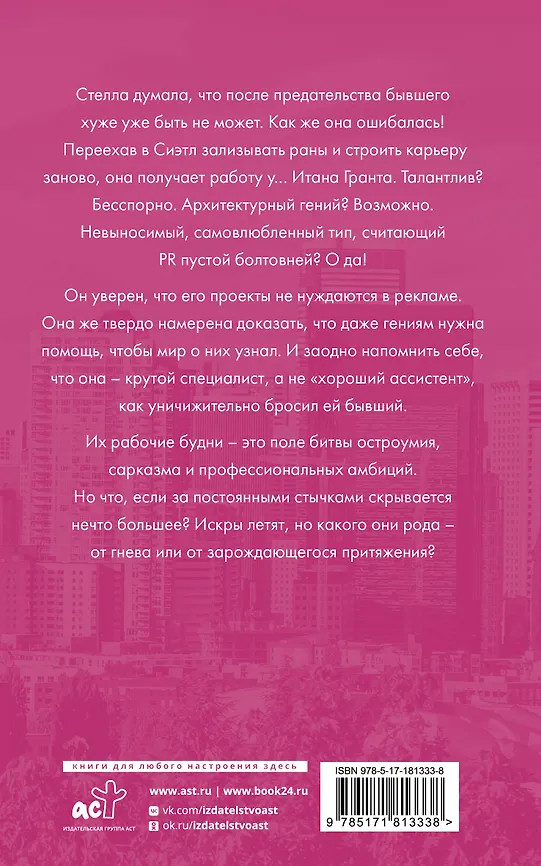 💳 Оплатить за товар можно при получении 🇰🇿 Есть бесплатная доставка по Казахстану от 1 дня 🎁 Копите бонусы с каждой покупки Серия: Горячие боссы Стелла думала, что после предательства бывшего хуже уже быть не может. Как же она ошибалась! Переехав в Сиэтл зализывать раны и строить карьеру заново, она получает работу у… Итана Гранта. Талантлив? Бесспорно. Архитектурный гений? Возможно. Невыносимый, самовлюбленный тип, считающий PR пустой болтовней? О да! |