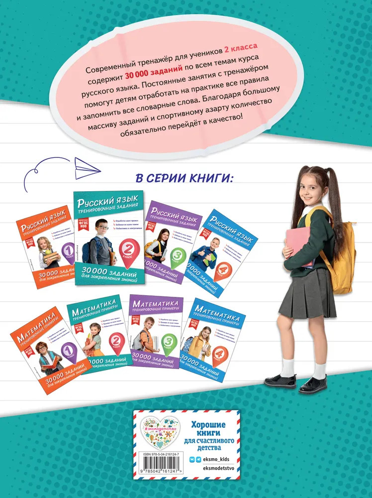 💳 Оплатить за товар можно при получении 🇰🇿 Есть бесплатная доставка по Казахстану от 1 дня 🎁 Копите бонусы с каждой покупки Серия: 30000 заданий для закрепления знаний Комплект учебных тренажёров для младших школьников — универсальное решение для успешного освоения школьной программы по русскому языку и математике. Каждая из книг предлагает 30 000 заданий, которые охватывают все ключевые темы 2 класса и помогают школьникам выработать прочные навыки, необходимые для уверенной учёбы. В каждом тренажёре ребёнок сначала повторяет правила или алгоритмы, а затем отрабатывает их на практике, закрепляя знания систематическим выполнением упражнений. Регулярные занятия с книгами позволяют быстро устранить пробелы, повысить уровень подготовки и довести навыки письма и устного счёта до автоматизма. Комплект идеально подходит для домашних занятий, помогая первокласснику справляться с учебными трудностями и добиваться успеха в школе. |