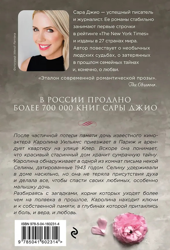 Две героини, две судьбы, две эпохи, и один город — Париж. Каролина Уильямс, дочь известного киноактера, после частичной потери памяти приезжает в Париж и арендует квартиру на улице Клер. Вскоре она понимает, что красивый старинный дом хранит тайну. Каролина обнаруживает в одной из комнат письма некой Селины, датированные 1943 годом. Селину удерживали в доме насильно, но она не теряла присутствия духа и делала все, чтобы спасти своих любимых, особенно малышку-дочь. Разбираясь с загадками, корни которых уходят более чем на полвека в прошлое, Каролина находит ключи и к собственной памяти, в глубинах которой притаились и боль, и вера, и любовь.