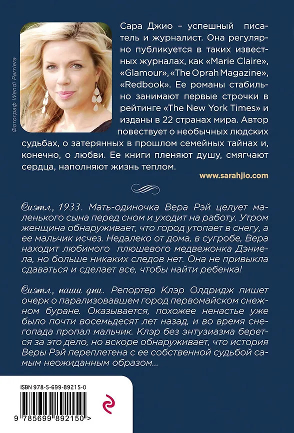 Сиэтл, 2010. Репортер Клэр Олдридж пишет очерк о парализовавшем город первомайском снежном буране. Оказывается, похожее ненастье было почти восемьдесят лет назад, когда во время снегопада пропал мальчик. Клэр без энтузиазма берется за это дело, но вскоре обнаруживает, что история Веры Рэй переплетена с ее собственной судьбой самым неожиданным образом.