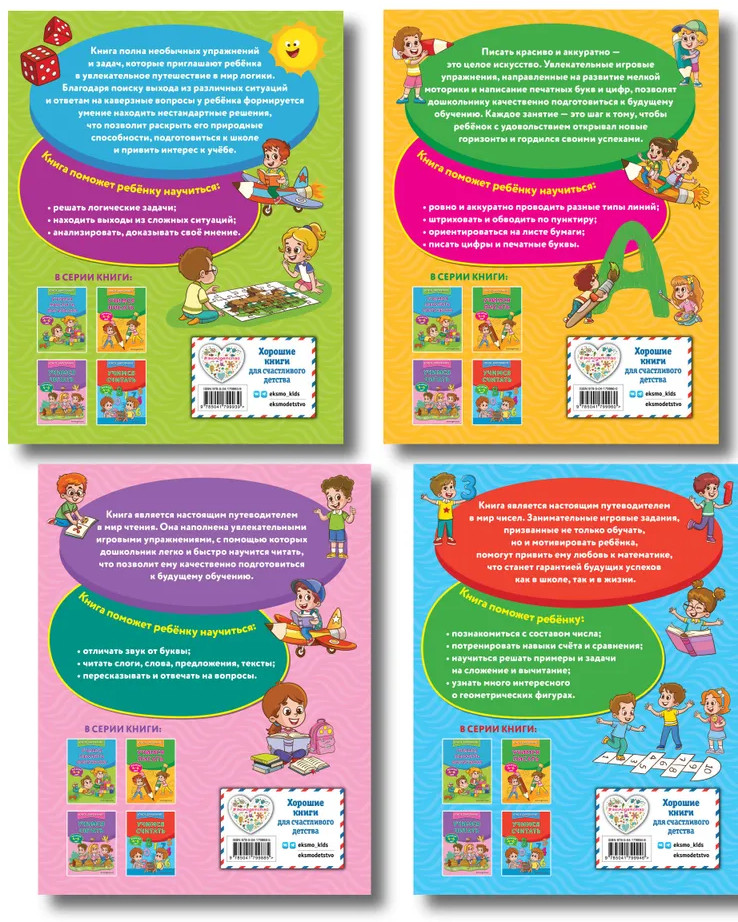 💳 Оплатить за товар можно при получении 🇰🇿 Есть бесплатная доставка по Казахстану от 1 дня 🎁 Копите бонусы с каждой покупки Серия: Юное дарование Полная подготовка к школе в одном комплекте! Комплект из 4-х развивающих пособий издательства «Эксмо» — всё необходимое для успешной подготовки ребёнка к школе. Авторская методика, апробированная в детском эко-клубе «Умничка», уже нашла тысячи поклонников среди родителей! Работая с развивашками, ребёнок будет учиться читать от звуков и букв до уверенного чтения текстов; разовьёт мелкую моторику, потренируется в графических диктантах и письме; освоит первые математические навыки, будет решать примеры и задачи в пределах 20; поработает над навыками аналитического мышления и логики. |