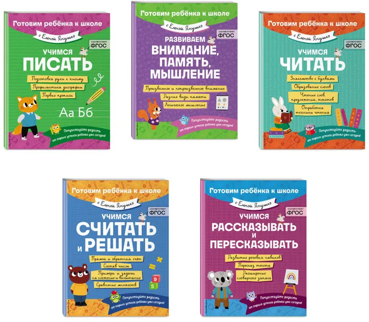 | Учимся рассказывать и пересказывать. Развиваем внимание, память, мышление. Учимся читать. Учимся считать и решать. Учимся писать. Комплект из 5 книг Елена Альбиновна Янушко +156 (бонусов)